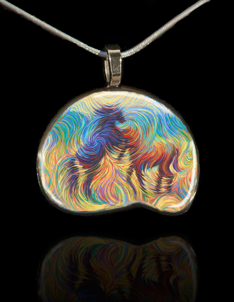 Based on the painting “Stallions” by award winning energy artist Julia Watkins, the image in this pendant symbolizes the free spirit and strength of the wild stallion. Wear it and feel the wind in your hair.